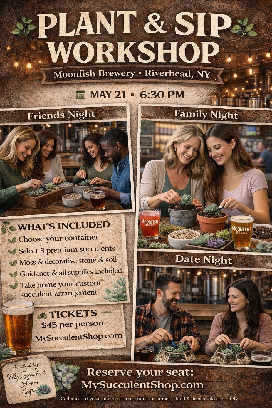 Plant and Sip event at Moonfish Brewery! $45 a ticket, can be purchased at mysucculentshop.com!
