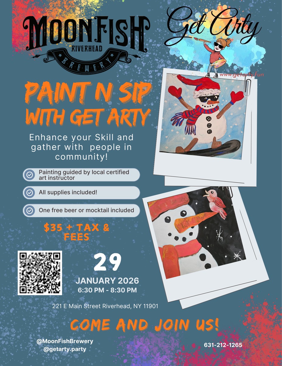 Join us for a Paint N Sip on Thursday January 29 with Get Arty! Price includes all materials needed to make your masterpiece + one free beer or mocktail!